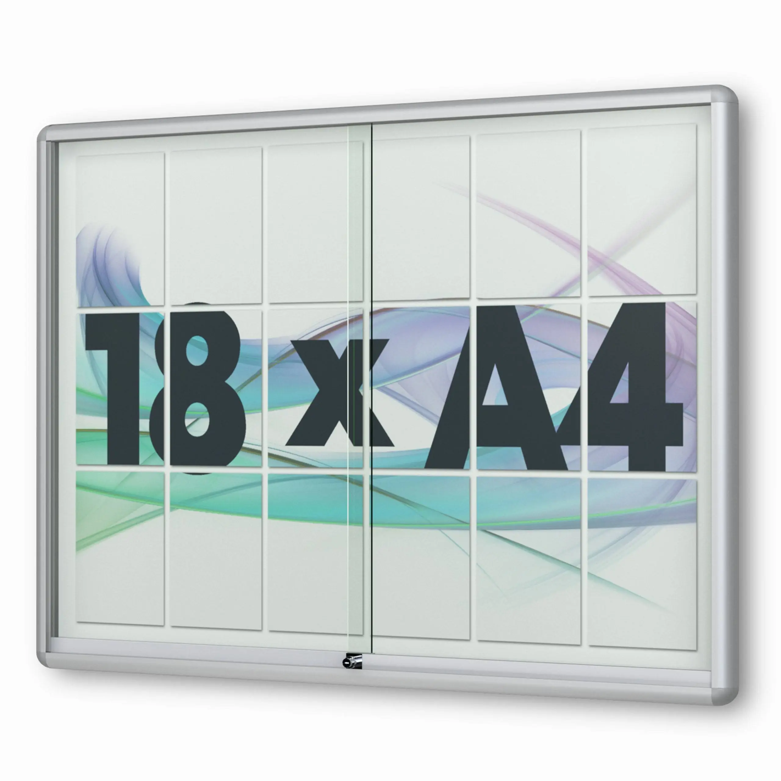 Vitrinen.de ➤ "18 x DIN A4 Schaukasten Moveo - "die Schulvitrine" - 50 mm Bautiefe - mit Brandschutzklasse A1 - Rollengelagerte Schiebetüren✓ abschließbar✓ ESG-Sicherheitsglas✓"